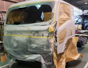 弊社は輸送用機器トレーラーの日本一のシェアを誇る『日本トレクス株式会社』本社工場内にて 新車トラックのキャブ・ボディ・トレーラー及びその他パーツ類の塗装作業を行っています。