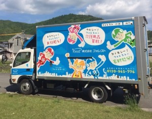 フォレスト本社の全景になります! ライフサポート用のトラックです!皆で協力しながら行ってま トラックはよく目立ちます!ここからご依頼いただくこともあ |