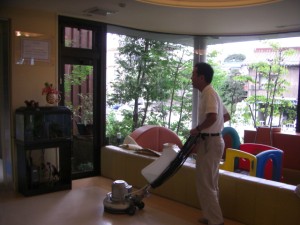 土曜日、日曜日など週末の仕事で、月に2〜3回の勤務です。割増時給となります。 仕事内容はビルやクリニックの床ワックス、ガラス清掃、エアコンの分解清掃の補助などで、体を適度に使う仕事です。