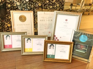 高級感のあるサロンで気分よく仕事 数々のディプロマが並ぶ アツいオーナー |